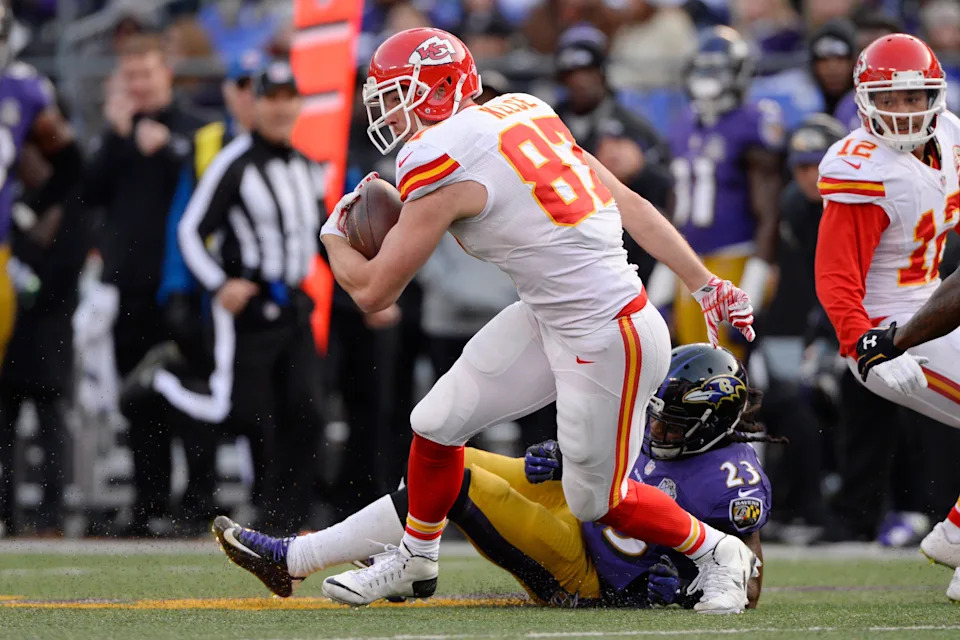 Dec. 20, 2015: Travis Kelce plays against the Baltimore Ravens during a 34-14 Kansas City Chiefs win at M&T Bank Stadium.