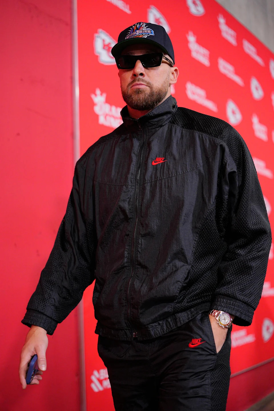 Nov. 23, 2025: Travis Kelce arrives before the Kansas City Chiefs’ game against the Indianapolis Colts at GEHA Field at Arrowhead Stadium.