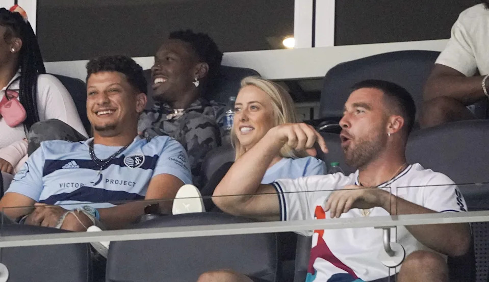May 10, 2022: Patrick Mahomes, wife Britney, and Travis Kelce watch play during Sporting Kansas City’s match against FC Dallas in the Lamar Hunt U.S. Open Cup at Children’s Mercy Park. Sporting Kansas City won the game, 4-2, in extra time.
