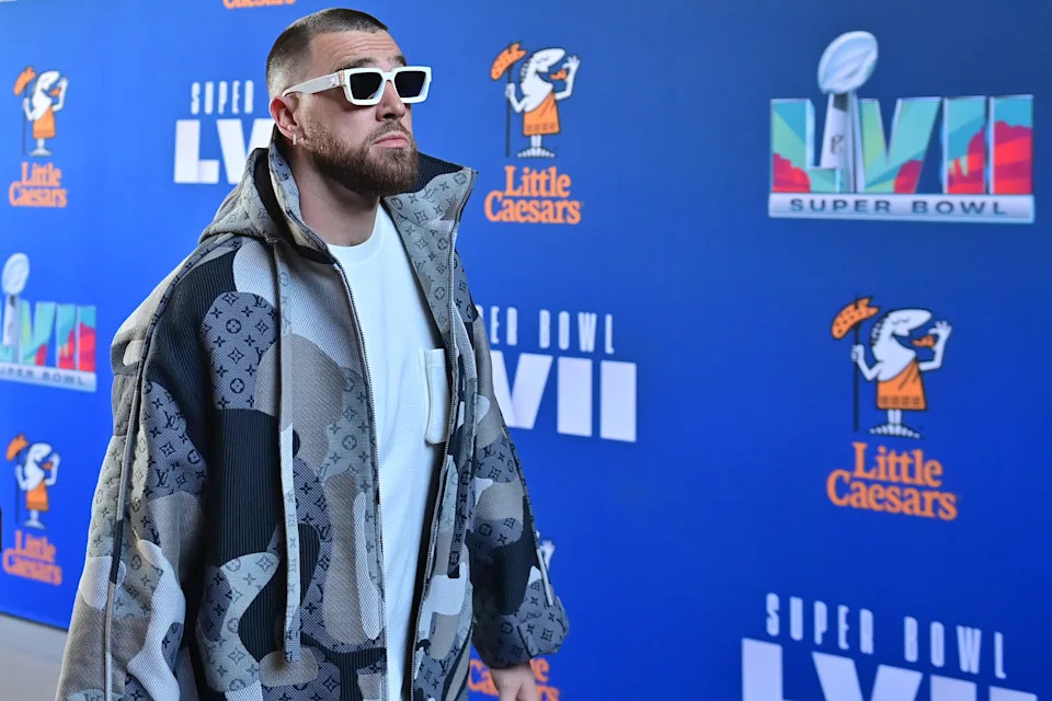 Feb. 12, 2023: Travis Kelce arrives before Super Bowl LVII at State Farm Stadium in Glendale, Arizona.
