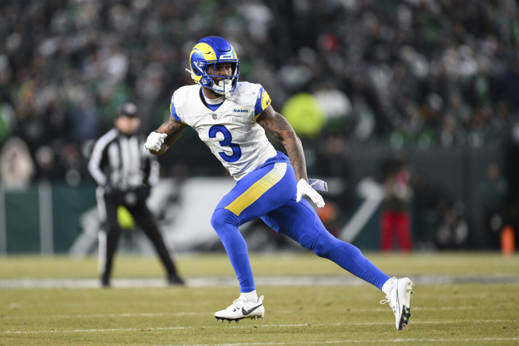 Los Angeles Rams safety Kamren Curl (3) in action during the first half of an NFL divisional playoff football game against the Philadelphia Eagles, Sunday, Jan. 19, 2025, in Philadelphia. (AP Photo/Terrance Williams)