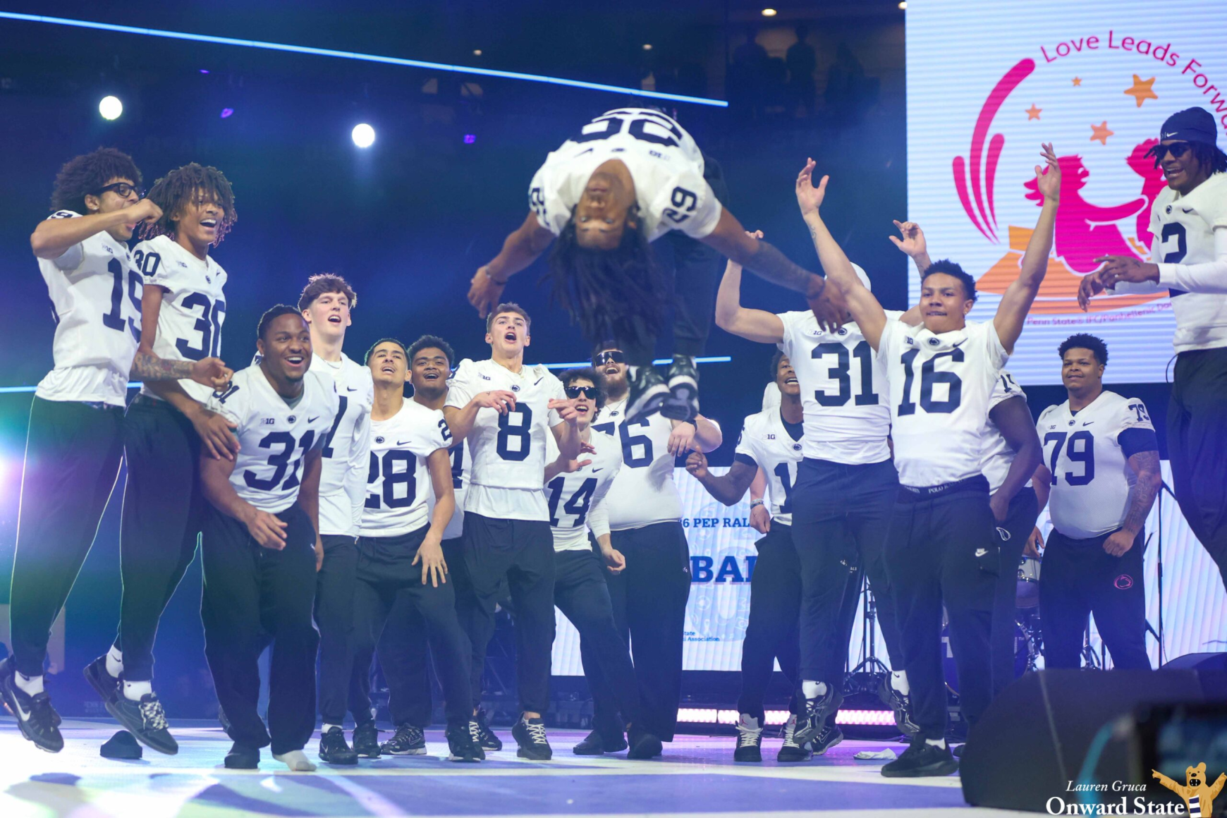 Penn State football rolled out a squad of predominantly transfers and freshmen for the team’s THON 2026 Pep Rally performance. While men’s soccer ultimately pulled out the final win over men’s gymnastics (a lot of mixed opinions there), football still made the most of its brief stint on stage.