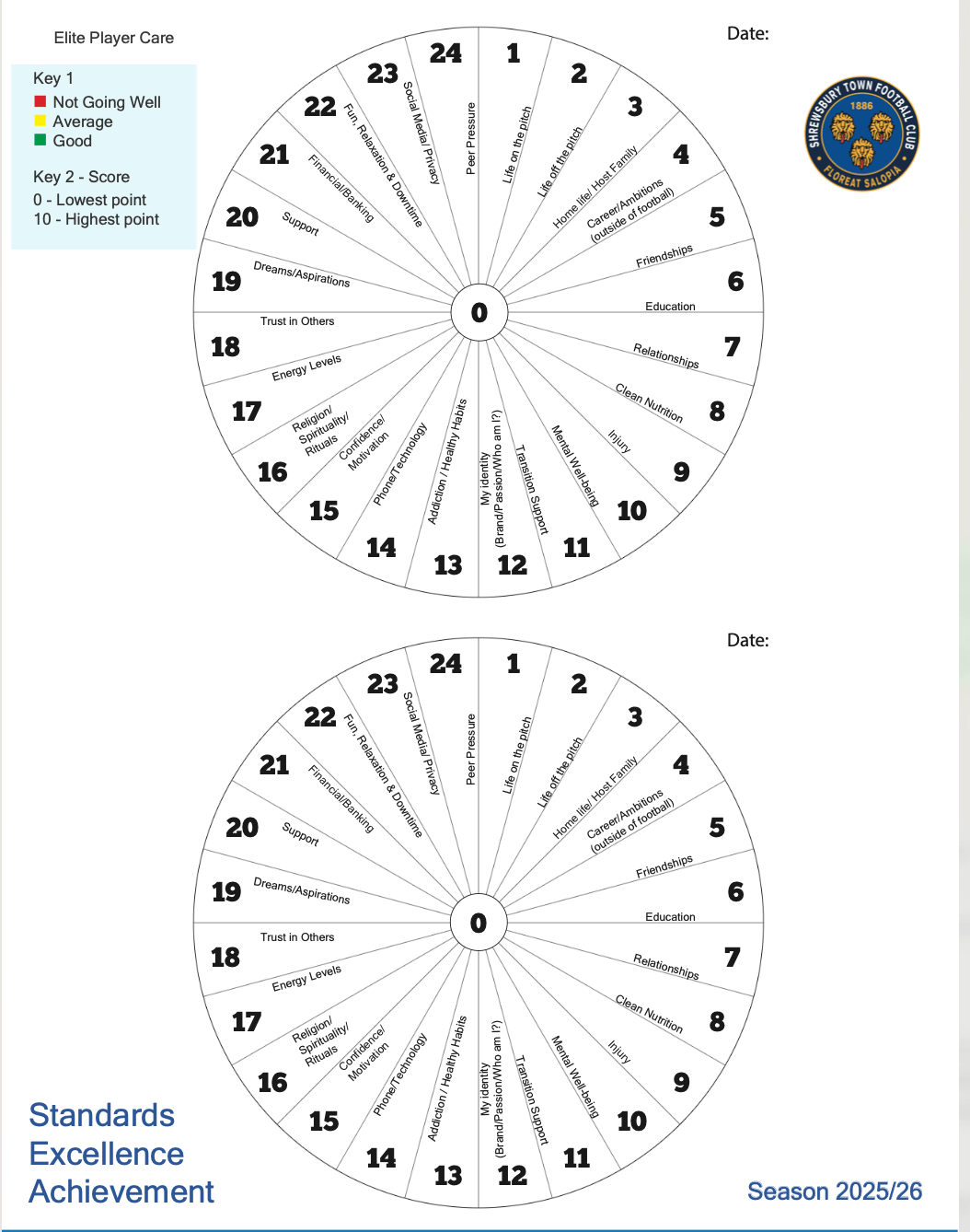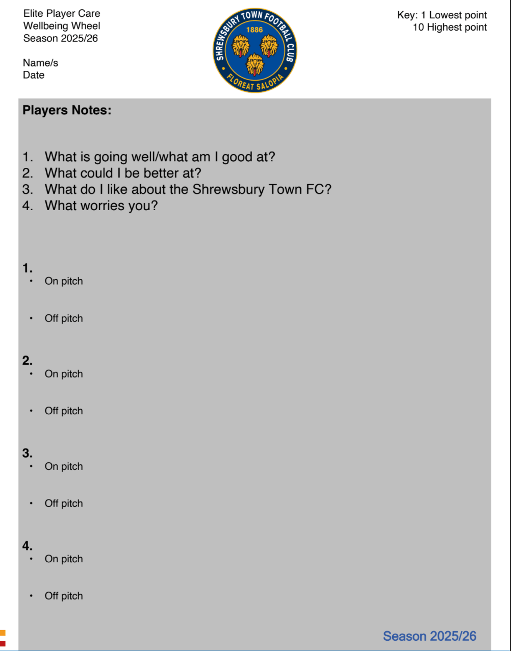 A player care journal given to Shrewsbury’s youngsters (Shrewsbury Town FC)