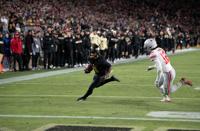 Freshman wide receiver Rondale Moore catches a 9-yard touchdown right before halftime against Ohio State.