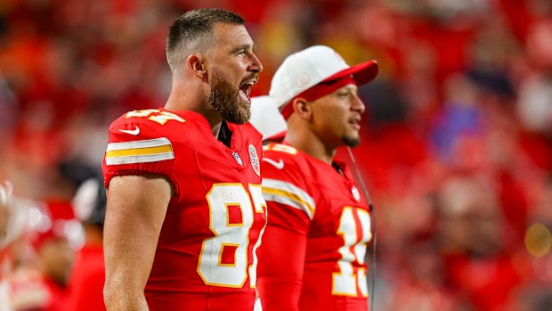 Travis Kelce of the Kansas City Chiefs and Patrick Mahomes of the Kansas City Chiefs. Getty