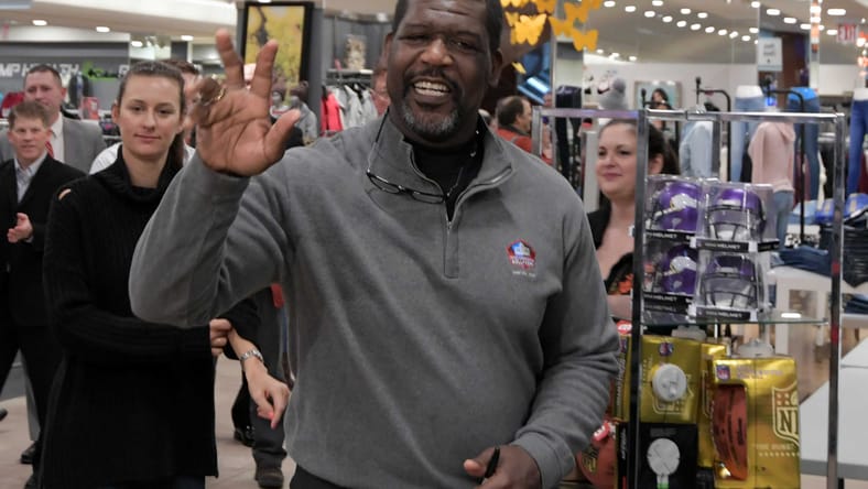 Feb 2, 2018; Minneapolis, MN, USA; Minnesota Vikings and Pro Football Hall of Fame offensive guard Randall McDaniel at Macy’s at the Mall of America prior to Super Bowl LII between the Philadelphia Eagles and the New England Patriots. Mandatory Credit: Kirby Lee-USA TODAY Sports