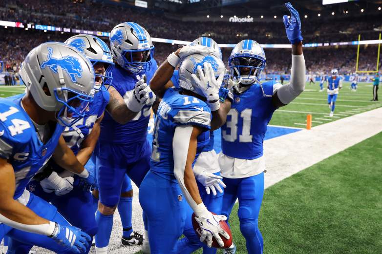 GettyKalif Raymond #11 of the Detroit Lions celebrates a touchdown during the fourth quarter against the Cleveland Browns at Ford Field on September 28, 2025 in Detroit, Michigan.