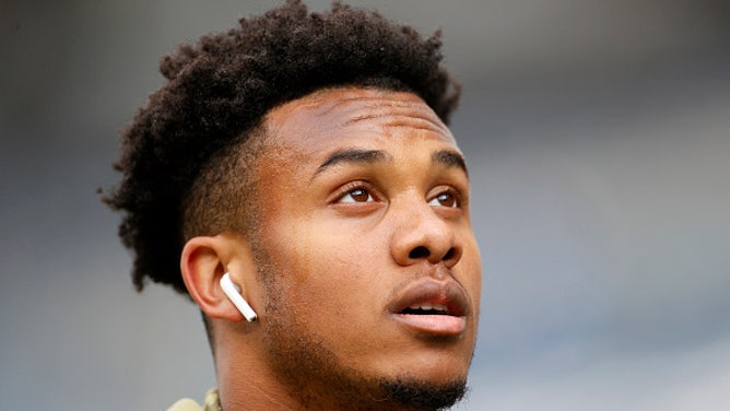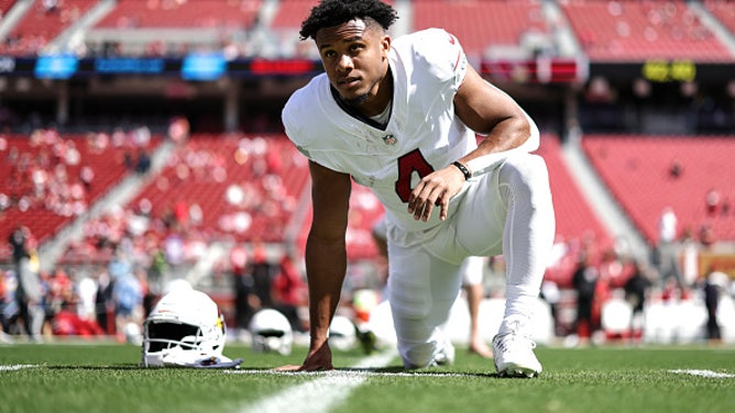 Rondale Moore of the Arizona Cardinals looks on as he warms up prior to an NFL football game. (Photo by Michael Owens/Getty Images)