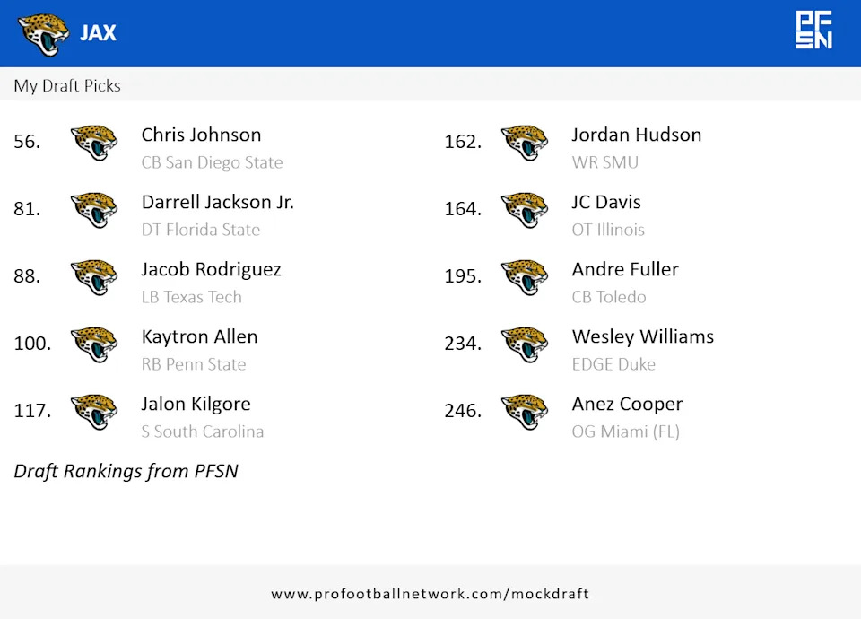 Probably the biggest need for the Jaguars as things stand, the secondary will be a prime area of focus as this offseason progresses. Finding a bonafide starter in the second round isn’t always guaranteed, but Gladstone and co should be delighted if Johnson is still available at 56…