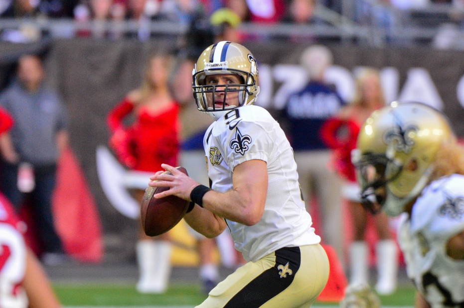 Dec 18, 2016; Glendale, AZ, USA; New Orleans Saints quarterback Drew Brees (9) throws during the first half against the Arizona Cardinals at University of Phoenix Stadium. Mandatory Credit: Matt Kartozian-USA TODAY Sports