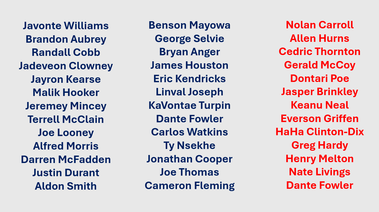 And adding even more fuel to the bargain bin appeal, the Cowboys have found their greatest external value from low-cost investments. They have actually done a solid job filling roster holes without mortgaging the future. This approach allows for flexibility and provides a much better return on investment than chasing those shiny new objects that often leave teams unfulfilled. See for yourself. Every time they try to get just a little fancy, it doesn’t work out, whereas they have had countless contributions from low-cost purchases.