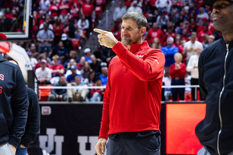 New Utah offensive coordinator Jordan Gross during Utah-BYU basketball game at the Huntsman Center in Salt Lake City, Utah, on Saturday, Jan. 10, 2026. | Anna Fuder/Utah Athletics