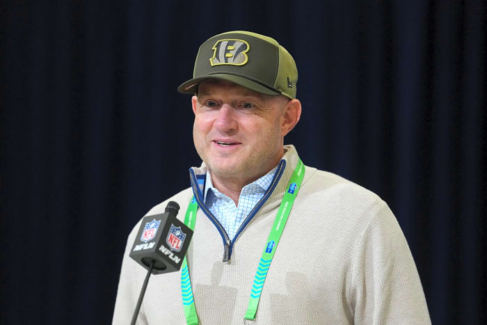 Feb 24, 2026; Indianapolis, IN, USA; Cincinnati Bengals general manager Duke Tobin speaks at the NFL Scouting Combine at the Indiana Convention Center. Mandatory Credit: Kirby Lee-Imagn Images