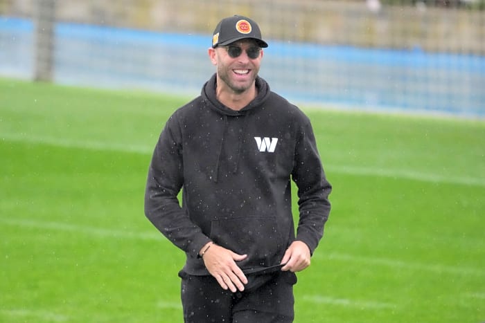 Nov 13, 2025; Madrid, Spain; Washington Commanders offensive coordinator Kliff Kingsbury during practice at Ciudad Deportiva del Real Madrid. Mandatory Credit: Kirby Lee-Imagn Images
