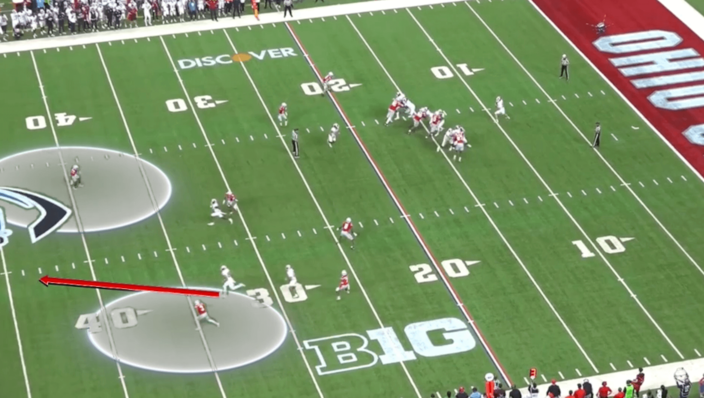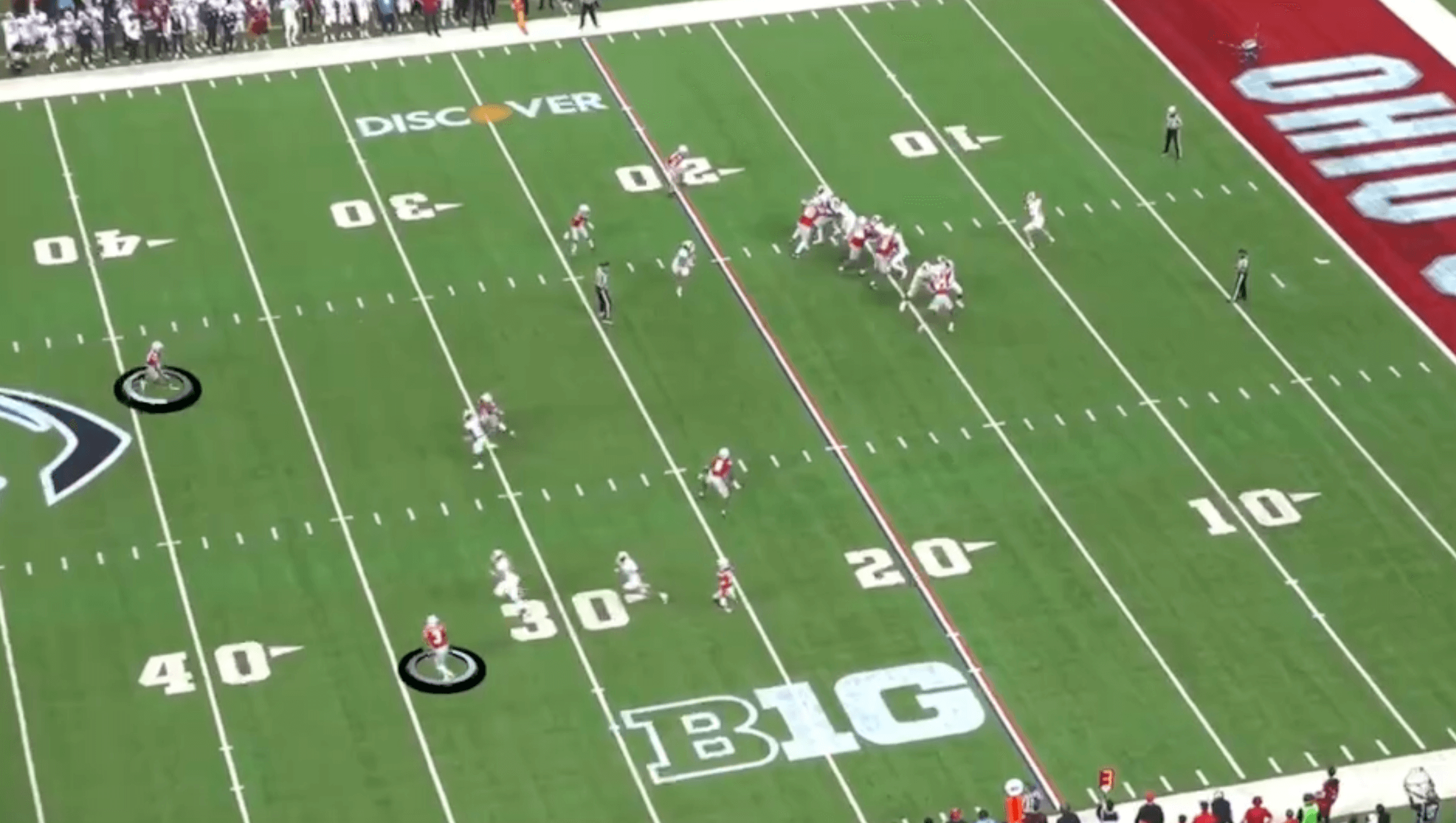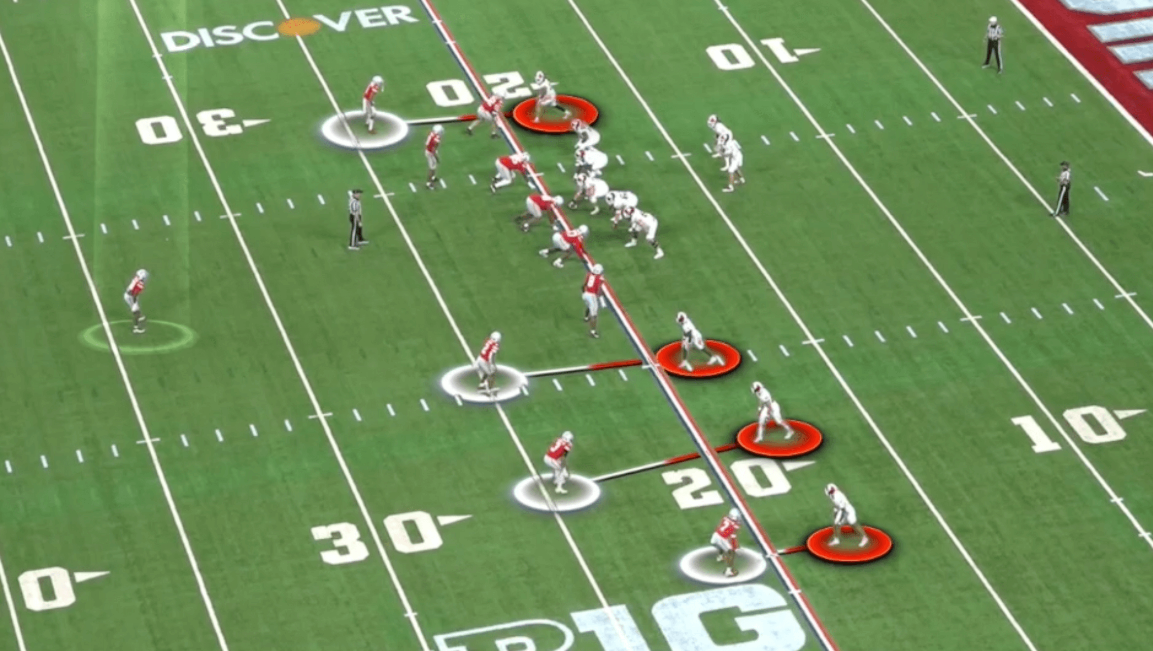 Here against Ohio State, the Buckeyes showed man coverage on third down.