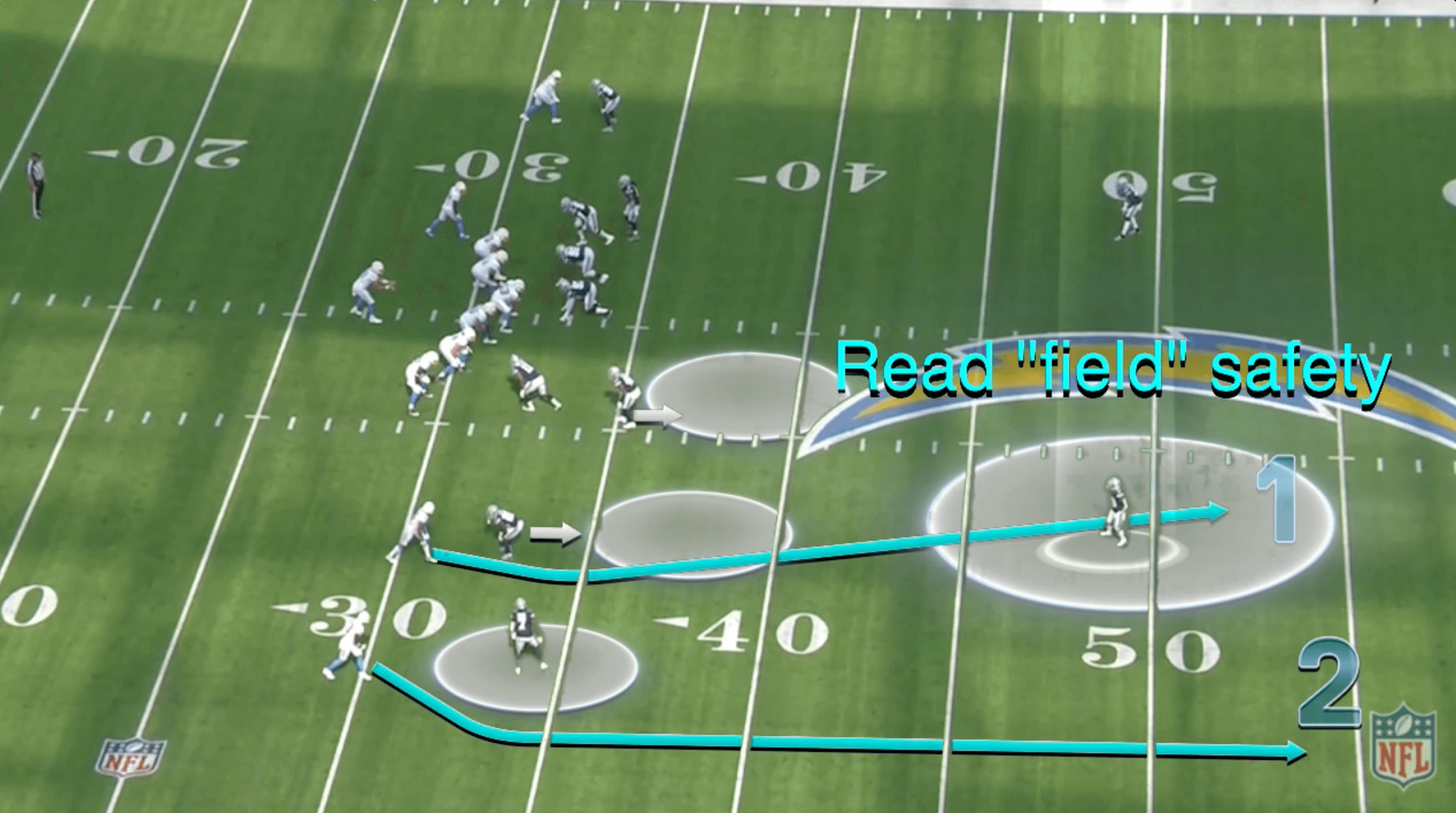 After the snap, the defense rotated into a cover 2 zone to the boundary (short side of the field), an inverted-2 with the corner playing a deep half to the field side.