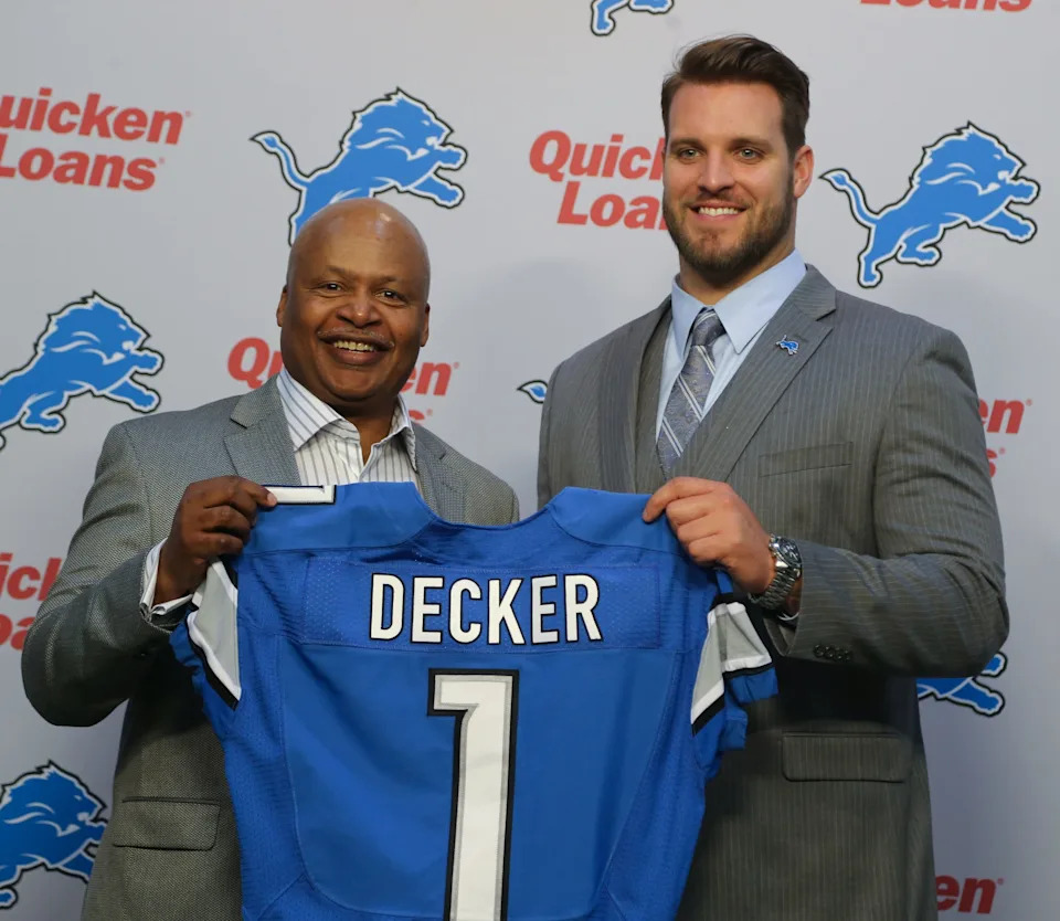 The Lions drafted Decker No. 16 overall in the 2016 NFL Draft out of Ohio State and Decker became a cornerstone as the blindside blocker for the Lions, first for Matthew Stafford and eventually for Jared Goff.