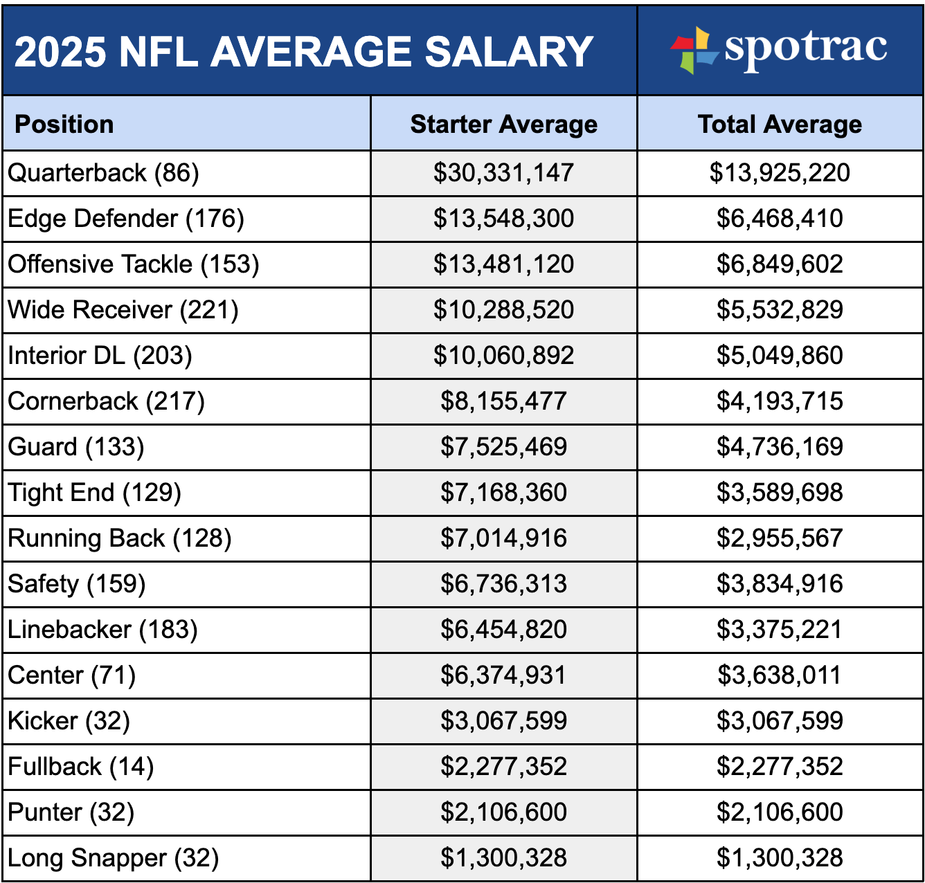 Here is a chart from Spotrac that shows how teams pay each position, which pretty much gives you how the league sees positional value: