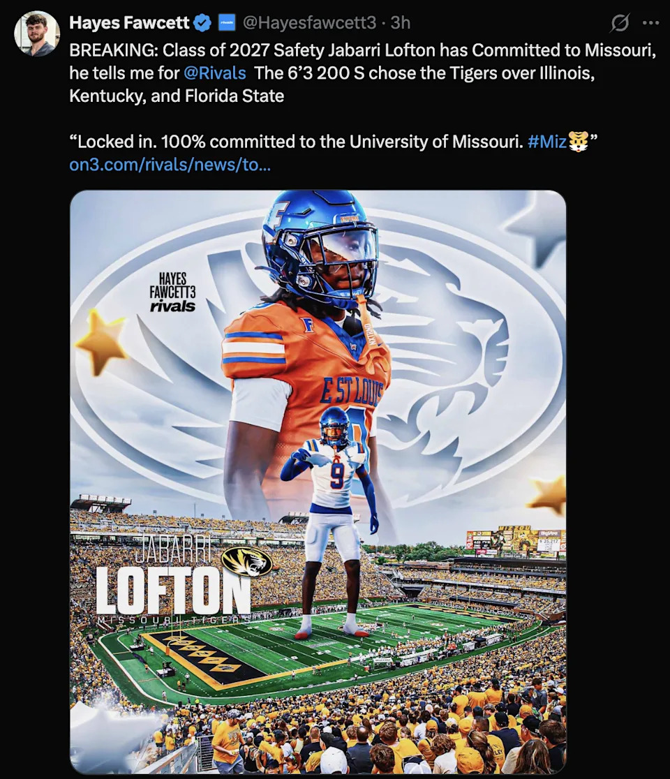 Jabarri Lofton, a 3-star prospect from East St. Louis, IL, announced his commitment via social media today.
