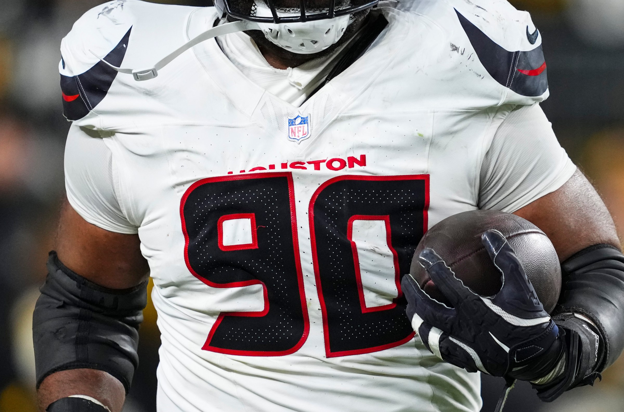 PITTSBURGH, PA – JANUARY 12: Sheldon Rankins #90 of the Houston Texans celebrates during an NFL wild card playoff football game against the Pittsburgh Steelers at Acrisure Stadium on January 12, 2026 in Pittsburgh, Pennsylvania. (Photo by Cooper Neill/Getty Images) Getty Images