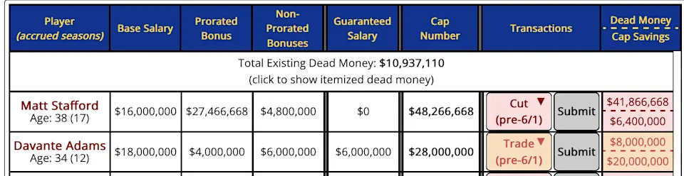 That’s more attractive trade asset as a 34-year-old receiver than the premise that a team is supposed to trade for Adams last week, pay him $6 million immediately, and then just pray that he gets to Week 1 without any new or old injuries popping up. Most teams just don’t have $24 million of cap space (this is including what they are supposed to pay their rookie class) and adding Adams is complicated.