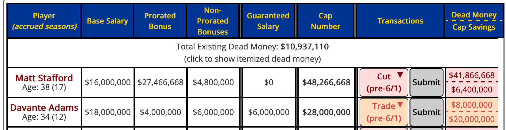 2) Other teams can now see Adams as “affordable” at an $18 million base salary instead of “over-budget” at $24 million.