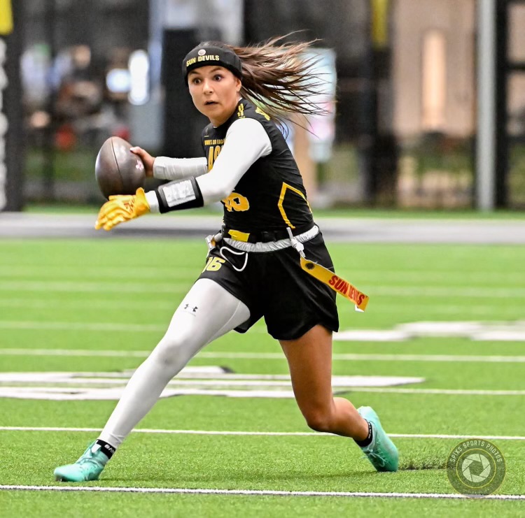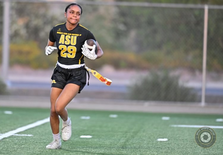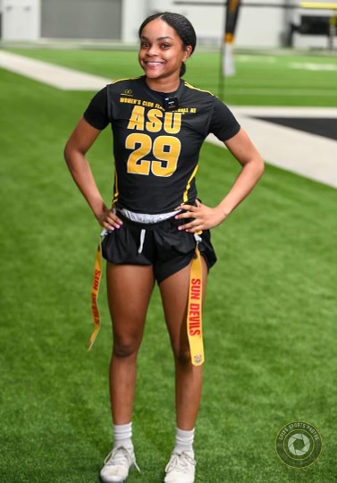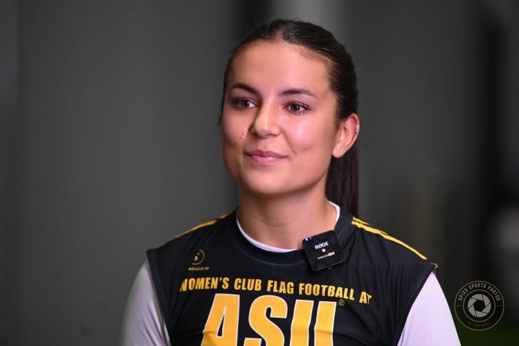 McCaa, a sophomore from Sierra Vista who graduated from Buena in 2024, earned varsity letters in both volleyball and track and field before arriving at Arizona State. Her track background brings raw speed to the flag football field, while her volleyball experience has sharpened the hand-eye coordination and team dynamics that translate seamlessly to the game. She is one of several athletes driving the growth of Arizona State’s women’s club flag football program in Tempe.