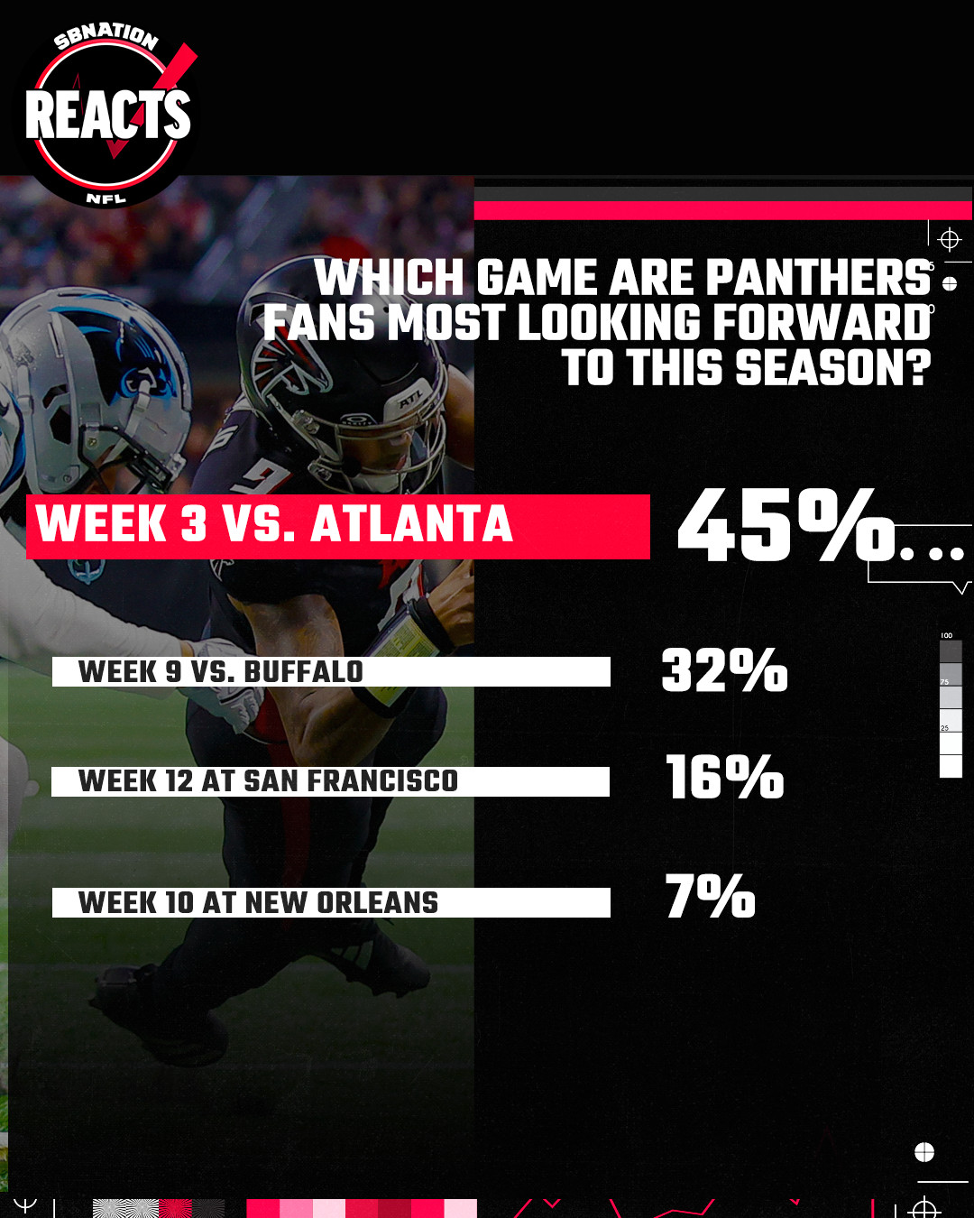 Fans of the Carolina Panthers are ready for football to start in Charlotte, per last week’s Panthers Reacts survey. We asked y’all which of four games you were most looking forward to this season. The answer was mildly mixed, but a strong plurality of y’all are more than ready for the Panthers Week 3 home opener vs the Atlanta Falcons.