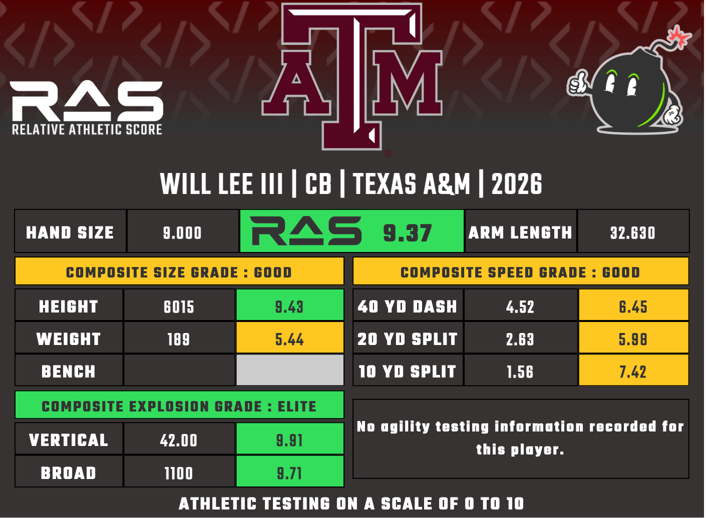 Round 4 (No. 105) — Will Lee, CB, Texas A&M