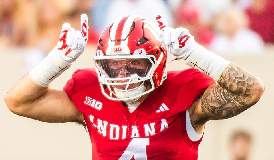 Indiana’s Aiden Fisher (4) during the Indiana versus Indiana State football game at Memorial Stadium on Friday, Sept. 12, 2025.