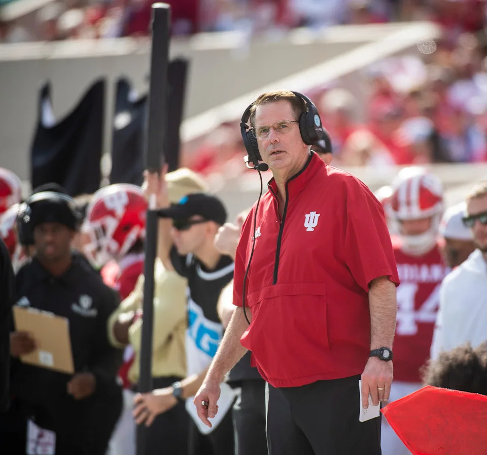 Indiana Head Coach Curt CIgnetti during the Indiana versus UCLA football game at Memorial Stadium on Saturday, Oct. 25, 2025.