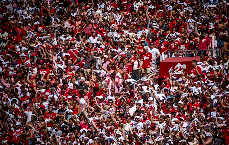 Fans cheer during the Indiana versus Old Dominion football game at Memorial Stadium on Saturday, Aug. 30, 2025.