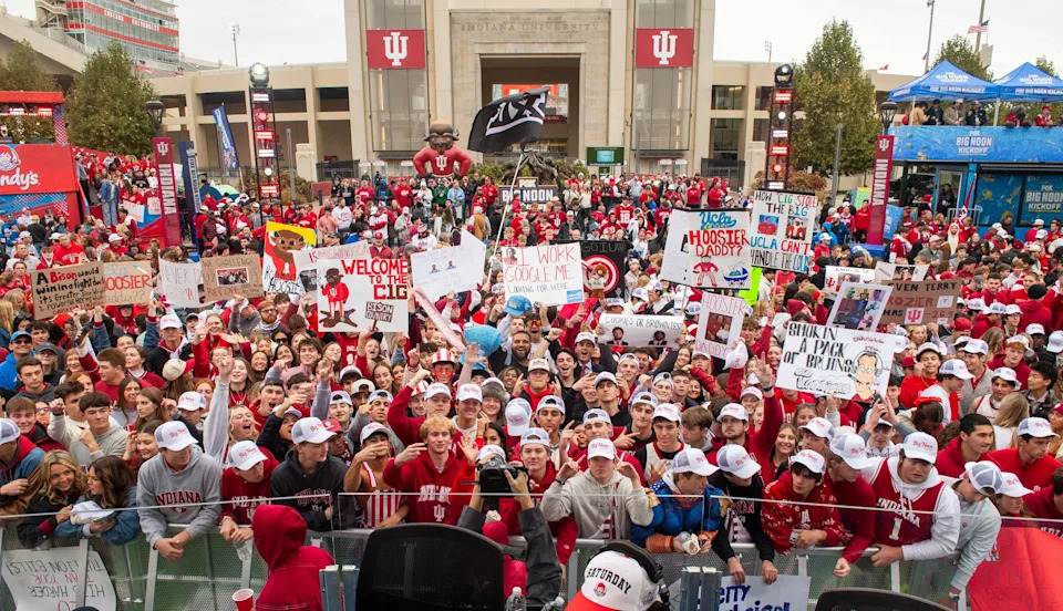 Fans cheer during the BIg Noon Kickoff before the Indiana versus UCLA football game at Memorial Stadium on Saturday, Oct. 25, 2025.