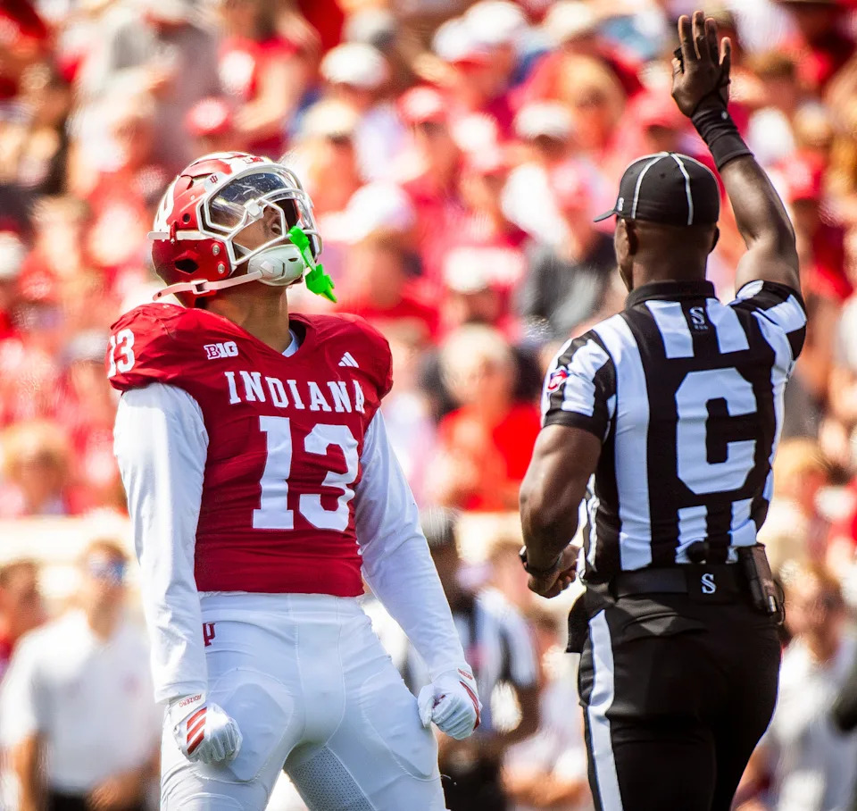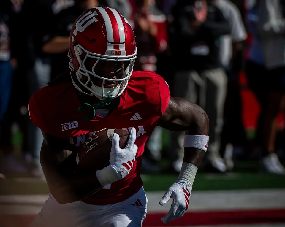 Indiana’s Roman Hemby (1) )before the start of the Indiana versus Kennesaw State Big Ten football game at Memorial Stadium on Saturday, Sept. 6, 2025.
