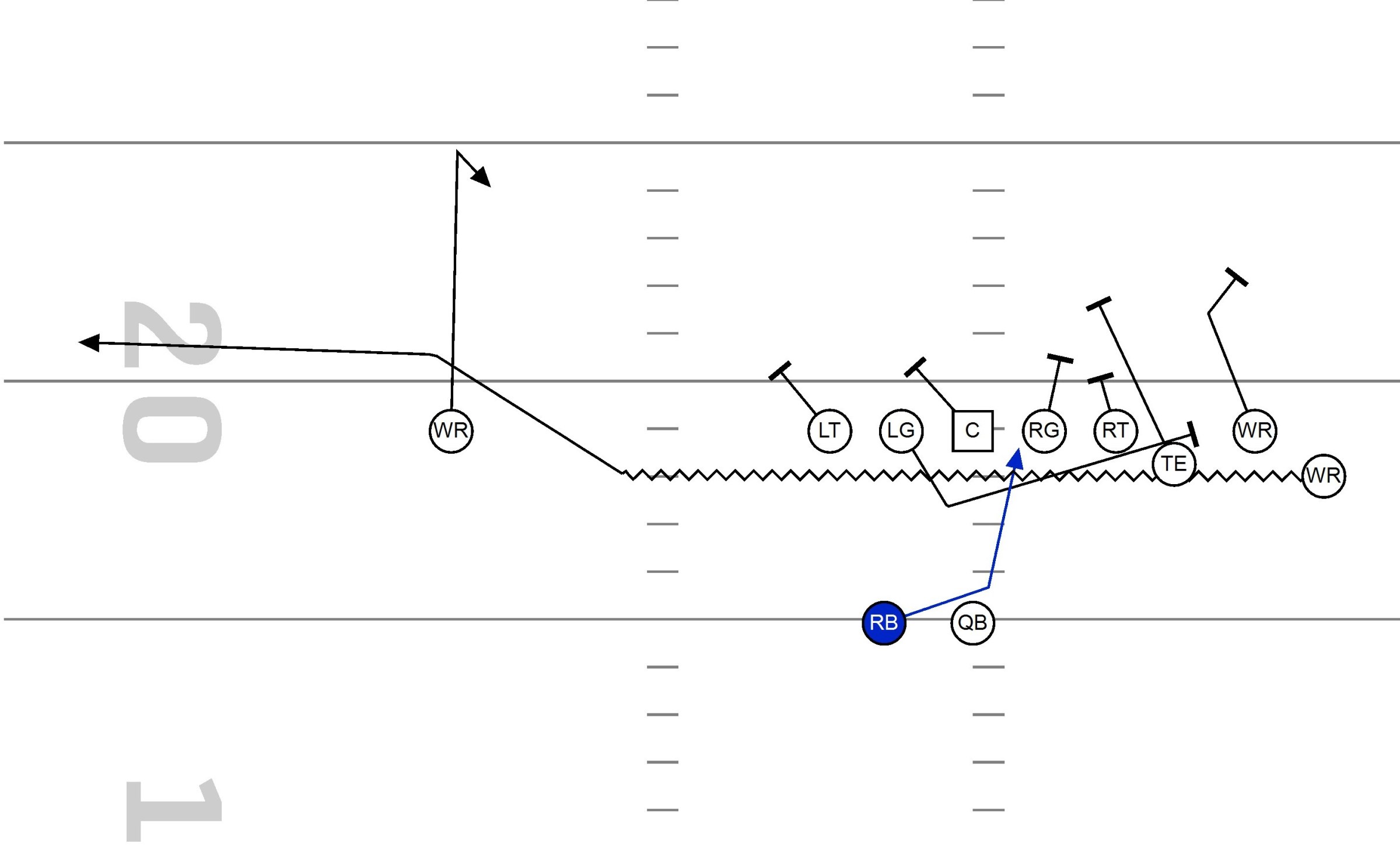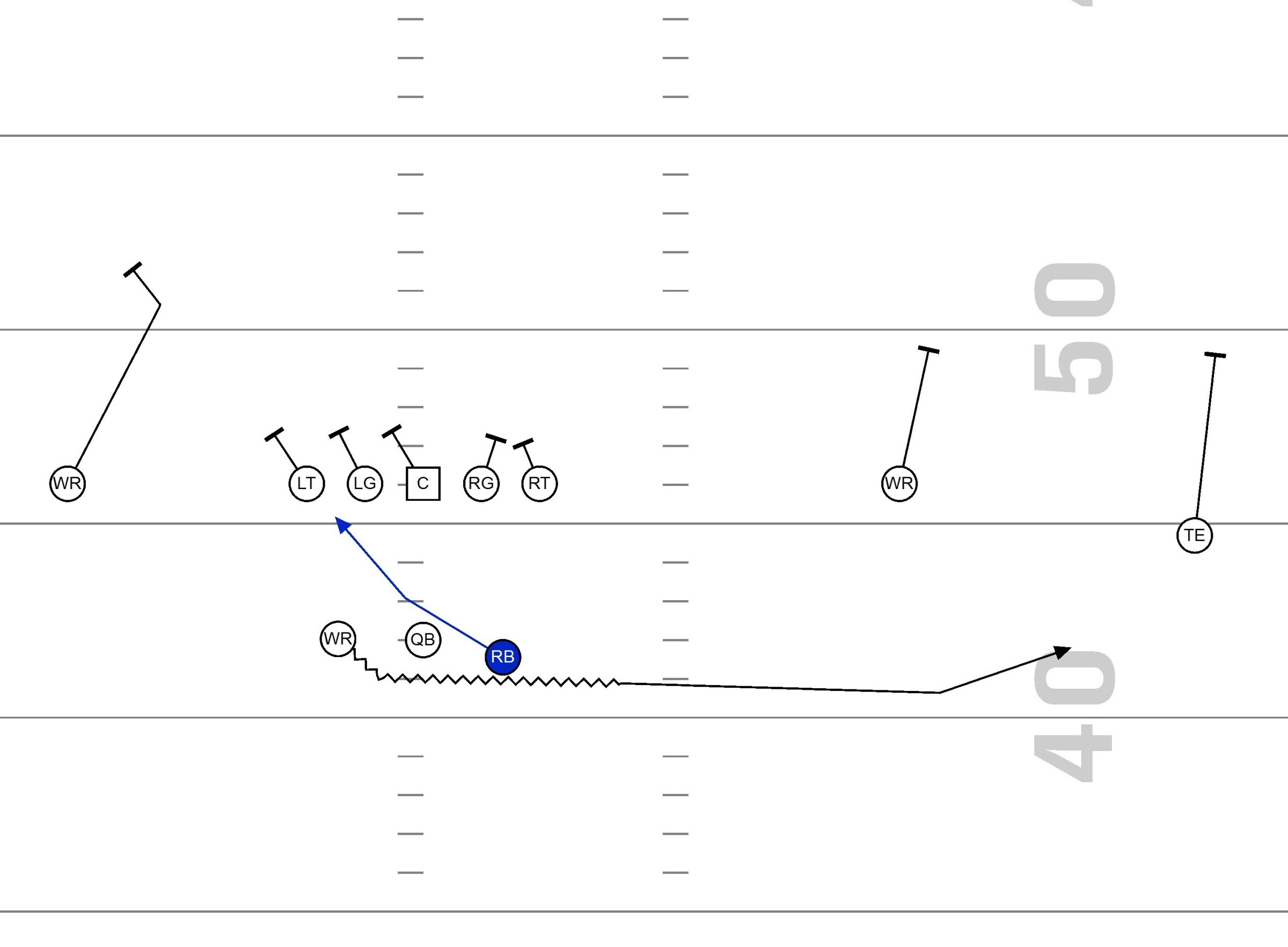 In the clip above, we have a power run to the right with Hank (hitch/flat) on the backside, with the flat route coming off fast motion.