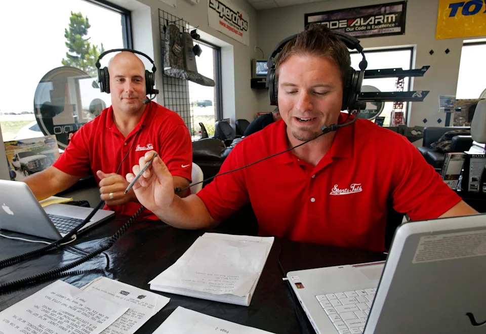 former University of Oklahoma (OU) football players Dusty Dvoracek and Teddy Lehman doing their radio program on Tuesday, July 17, 2012 in Norman, Okla. Photo by Steve Sisney, The Oklahoman