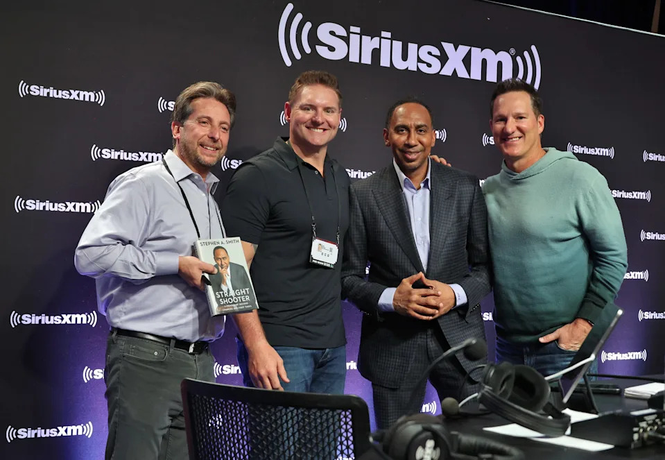 PHOENIX, ARIZONA – FEBRUARY 09: (L-R) Steve Cohen, Dusty Dvoracek, Stephen A. Smith and Danny Kanell attend SiriusXM At Super Bowl LVII on February 09, 2023 in Phoenix, Arizona. (Photo by Cindy Ord/Getty Images for SiriusXM)