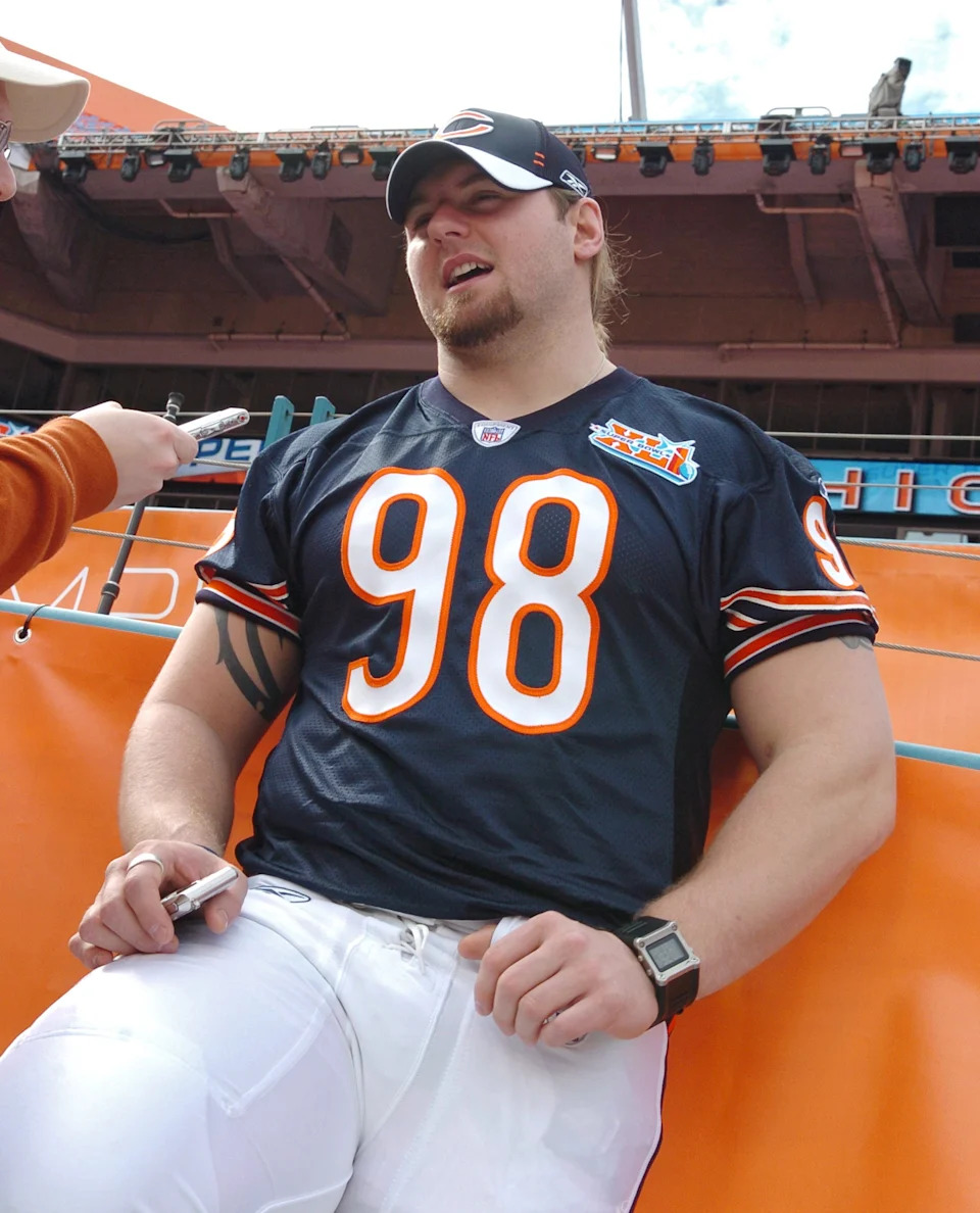 Dusty Dvoracek of the Chicago Bears during Media Day prior to Super Bowl XLI at Dolphins Stadium in Miami, Florida on January 30, 2007. (Photo by Al Messerschmidt/Getty Images)