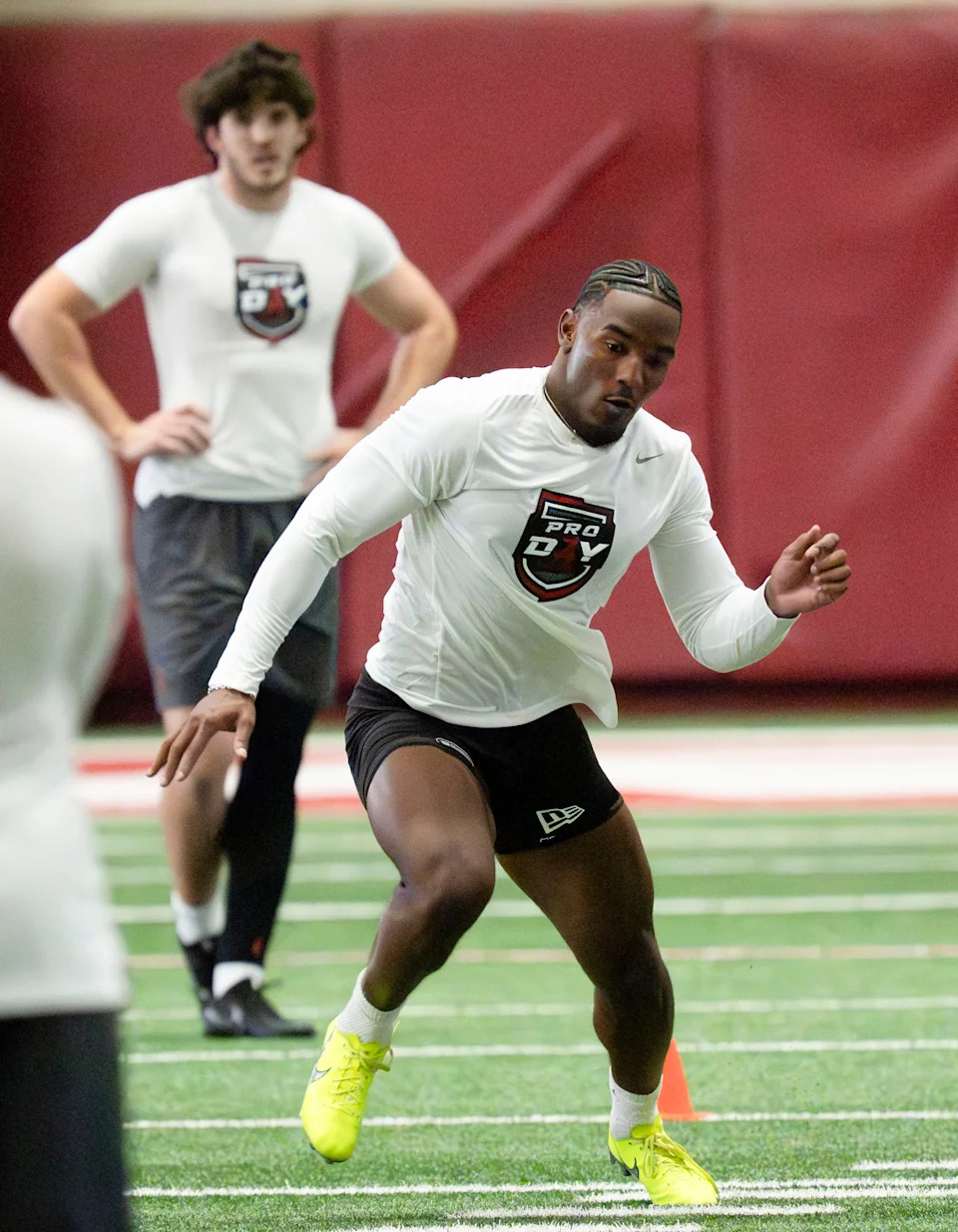 March 25, 2026; Tuscaloosa, AL, USA; Defensive back DaShawn Jones runs the 40 yard dash during Pro Day in the Hank Crisp Indoor Practice Facility at the University of Alabama.