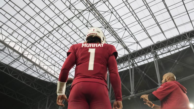 Arizona Cardinals quarterback Kyler Murray (1) warms up before playing against the Seattle Seahawks at State Farm Stadium in Glendale on Jan. 7, 2024.
