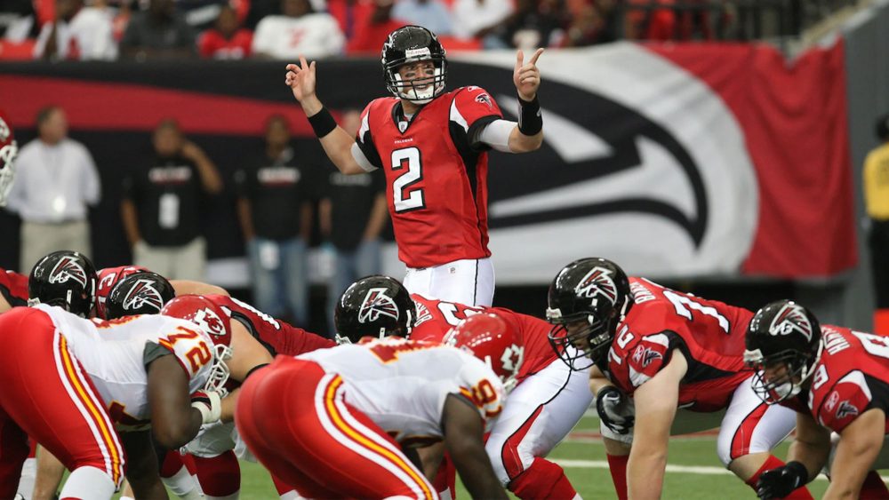 The Falcons added 1966 throwback uniforms to the rotation in 2009, but that was scrapped when the NFL implemented its one-helmet rule in 2013. They were then partially revived in 2016, blending eras by pairing their standard black lids and throwback decals with the 1966 jerseys, pants and socks.