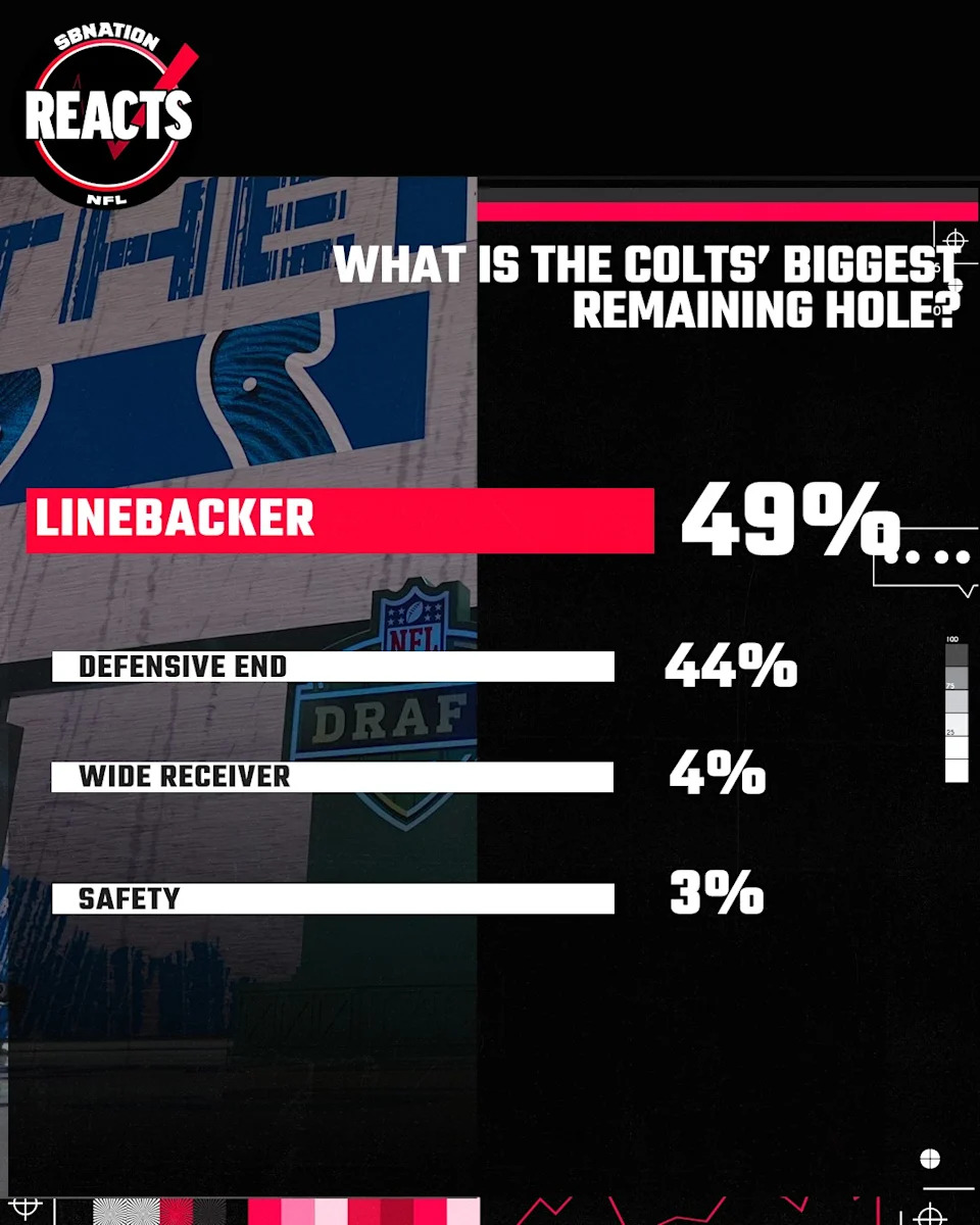 Still, 49% of Colts fans believe that linebacker is the biggest need on the Colts roster as it stands right now: