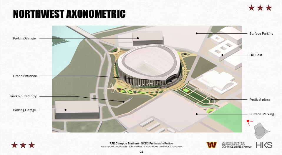 NCPC staff also recommended that “alternative orientations” and lower garage heights be considered to reduce visual impacts of views to the stadium, from Kingman Park and from other adjacent neighborhoods.