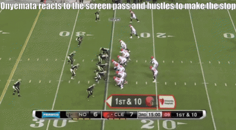Onyemata might drop off the line into a shallow zone a few times per game but isn’t someone who will be given any direct coverage assignments. He will hustle across to try and tackle on short passes, though.
