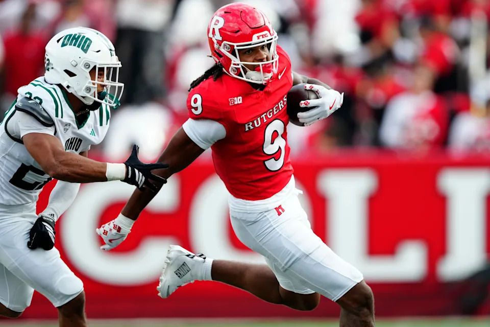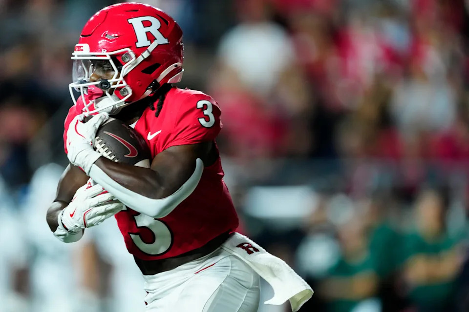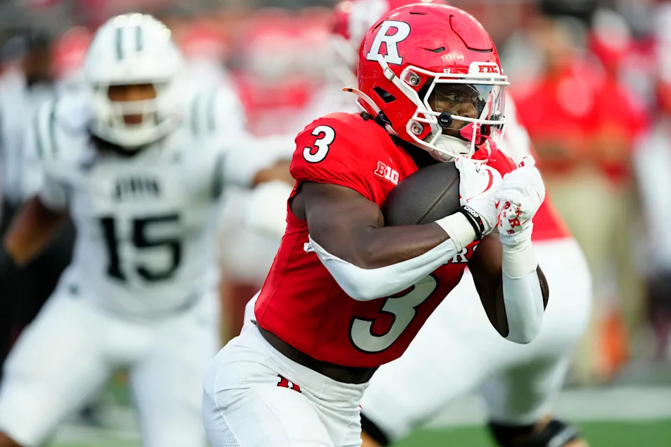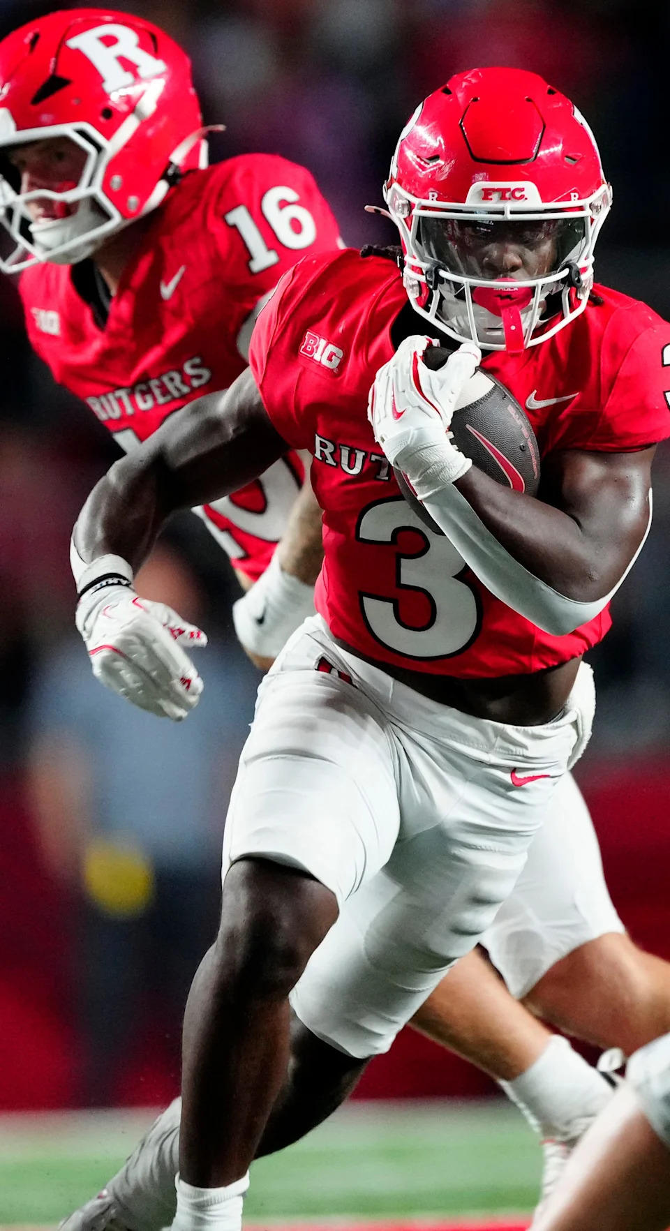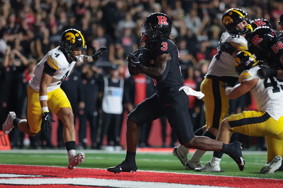 PISCATAWAY, NEW JERSEY – SEPTEMBER 19: Antwan Raymond #3 of the Rutgers Scarlet Knights runs with the ball against the Iowa Hawkeyes during the first half at SHI Stadium on September 19, 2025 in Piscataway, New Jersey. (Photo by Ed Mulholland/Getty Images)