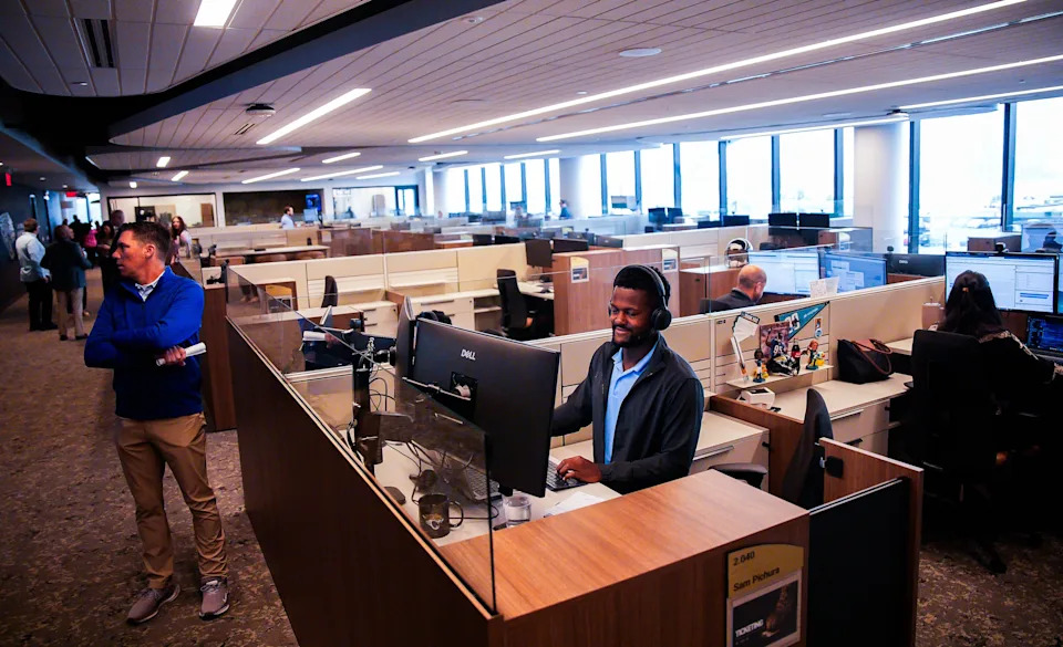 Sam Pichura works in the ticketing area of the Jacksonville Jaguars’ new business operations office at One Tower Court, Wednesday March 25, 2026, in downtown Jacksonville, Fla. [Doug Engle/Florida Times-Union]