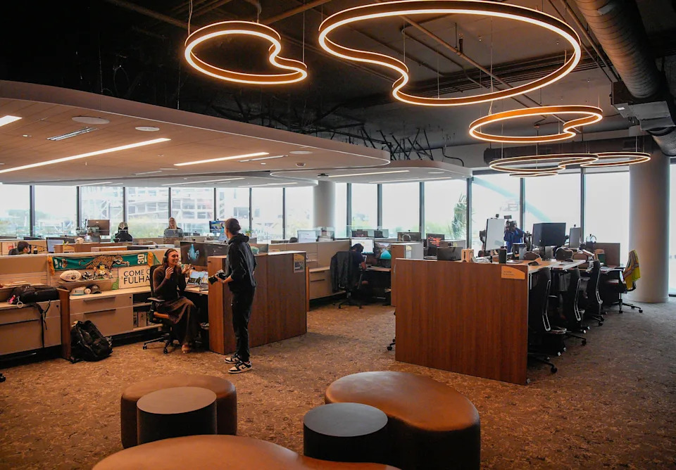 Jaguars social media employees talk on the second floor of the Jacksonville Jaguars’ newly opened business operations office at One Tower Court, Wednesday March 25, 2026. [Doug Engle/Florida Times-Union]