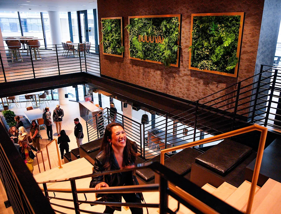 Jaguars employee Jenn Toy, Senior Director of Events and Entertainment, makes her way up to the third floor of the Jacksonville Jaguars newly opened business operations office at One Tower Court, Wednesday March 25, 2026. [Doug Engle/Florida Times-Union]