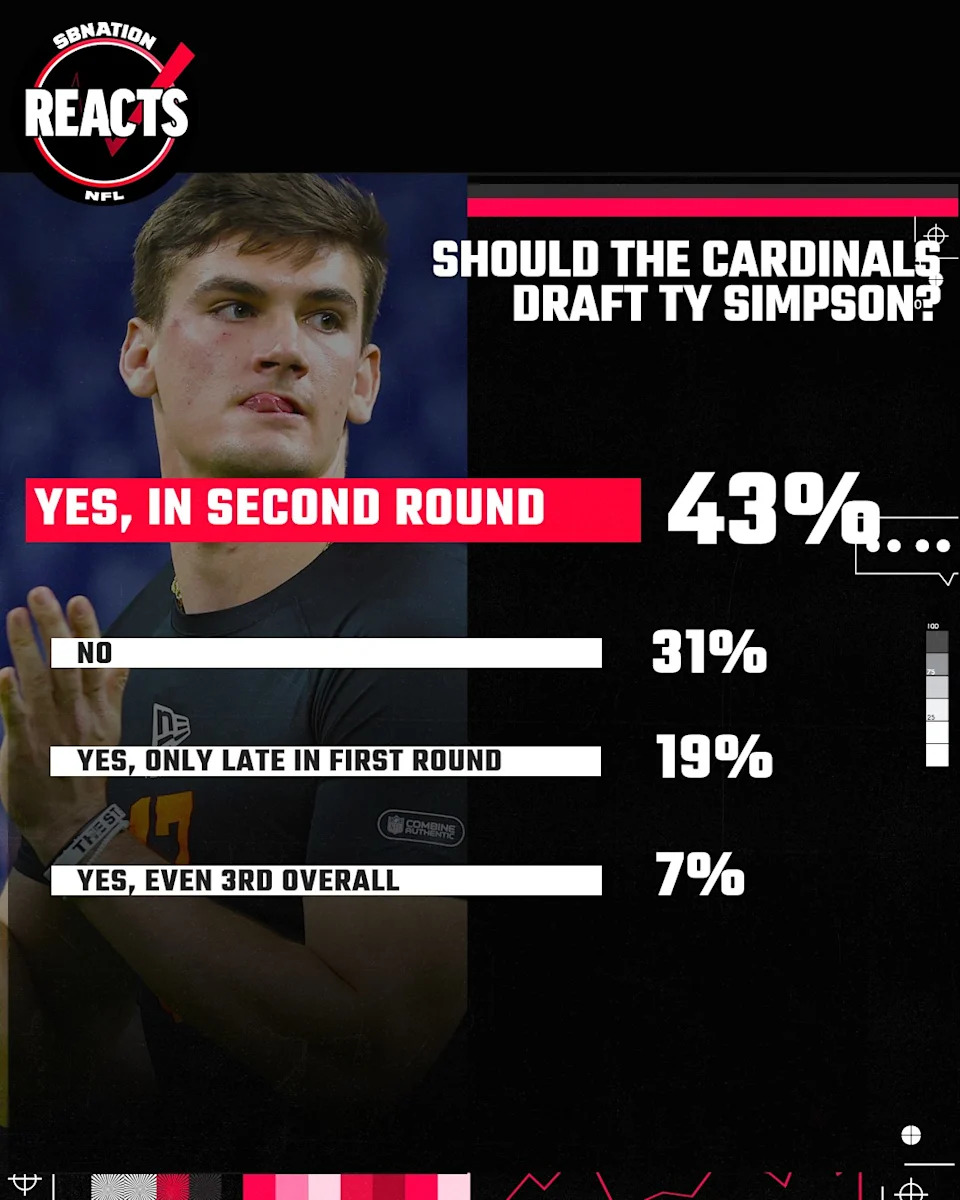 No, it was the next result that surprised me, as 31% just flat out said the Arizona Cardinals should not draft Ty Simpson.