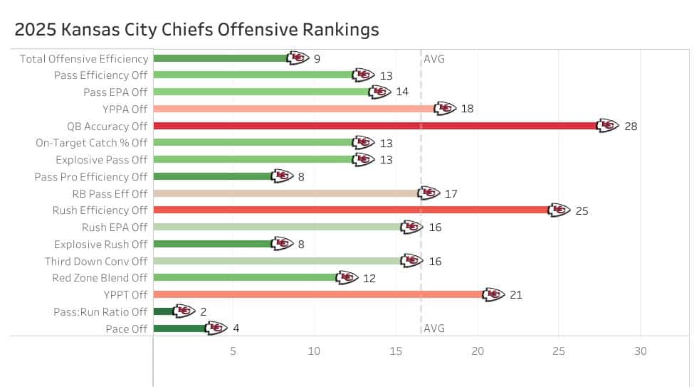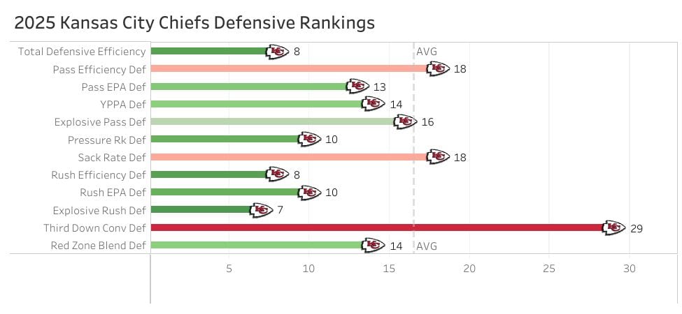 The Chiefs allowed 6.9 yards per attempt (14th) last season and finished 12th in EPA allowed per pass attempt.